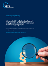 Balkonkraftwerke „boomen“ derzeit. Durch das Solarpaket I hat die Gesetzgebung die Anbringung von Balkonkraftwerken erleichtert und zugleich Regelungen für eine gemeinschaftliche Versorgung einer GdWE mittels Photovoltaik geschaffen. Darüber hinaus wird die Anbringung eines Balkonkraftwerkes zudem zu einer privilegierten baulichen Veränderung im Sinne von § 20 Abs. 2 WEG, so dass Eigentümer einen Anspruch auf einen Gestattungsbeschluss geltend machen können. Die aktualisierte Handlungsempfehlung erläutert, mit welchen Vorgaben die Errichtung von Balkonkraftwerken gestattet werden kann und zwar sowohl für den Einzelfall als auch im Rahmen eines allgemeinen Grundlagenbeschlusses in einer Gemeinschaft. Entsprechende Beschlussmuster finden Sie ebenfalls in der Handlungsempfehlung. Daneben können in Eigentümergemeinschaften nun Gebäudestromanlagen betrieben werden, durch welche die Eigentümer/Nutzer direkt mit hauseigenem Strom versorgt werden, ohne den Umweg über einen Netzbetreiber. Die Handlungsempfehlung beleuchtet die bei der Entscheidungsfindung für eine Anlage zu beachtenden Aspekte. (Aktualisierte Fassung Stand Oktober 2024, PDF-Datei zum Download: 3,9 MB)